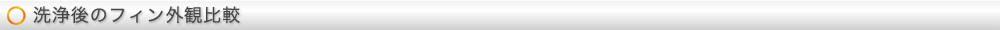 ②次にシャイニーサイドLOでフィン表面を洗浄、その後リンスNを用いて中和を行います。 水洗後はpH試験紙でフィン表面が中和されたことを確認します。 |