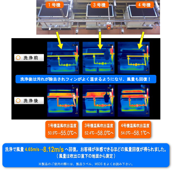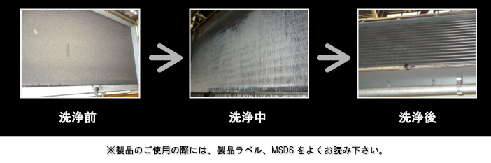 東海地方の大手自動車工場内における、エアカーテンフィンの洗浄例を紹介します。 エアカーテンフィンの問題点 ①エアカーテンは建屋出入口開口上部から空気を下に向けて吹き出し、外気と内気の交流を遮断する 装置です。この工場では、夏場はファンのみでの送風ですが、冬場は吸気口から取り込まれた空気を フィンを介しボイラ温水で温めて吹き出します。 ② エアカーテンは使用するにつれ、空気中のチリやホコリ、環境粉塵などが吸気口に堆積、通風が 悪くなると共に、吹き出し風量が低下してしまいます。そうなると外気と内気の遮断能力も低下、 外気の汚れが工場内に入り込んで製品に付着したり、外気の侵入により空調の効率が低下し、無駄な 空調費用がかさむ懸念が有りました。 |